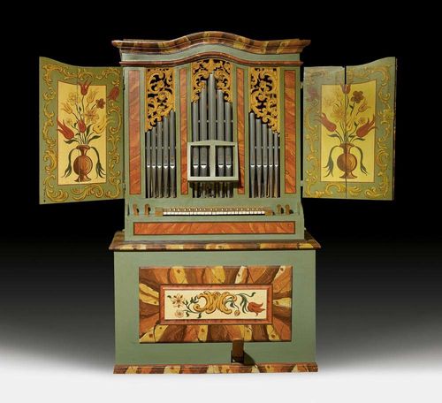 Photo of the Month: 1727 four rank, lavishly painted chamber organ, made in eastern Switzerland, and reported (2010) to be in Beijing.