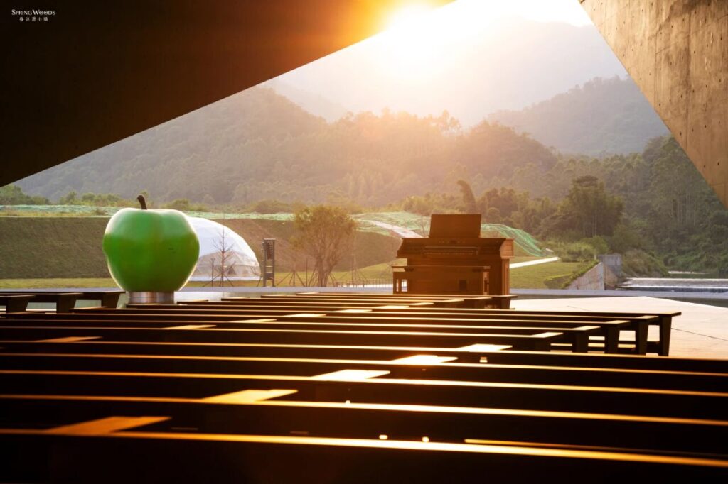 Heyuan is a hot-springs resort town on the East River (dongjiang), about 140km northeast of Guangzhou (Canton). The organ is located in a tetrahedron-shaped secular ‘Chapel of Sound’, built on a platform adjacent to an artificial lake. The Chunmuyuan resort development is known as ‘Springwoods’ in English, a general translation of chunmuyuan.